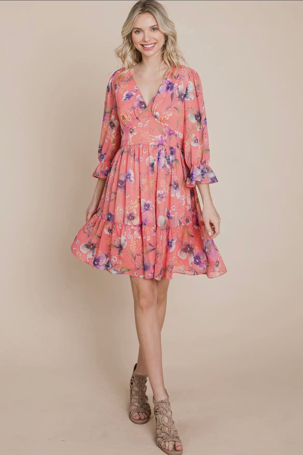 A flattering and feminine dress with a v-neckline and elastic around waist. Keyhole back. True to size.