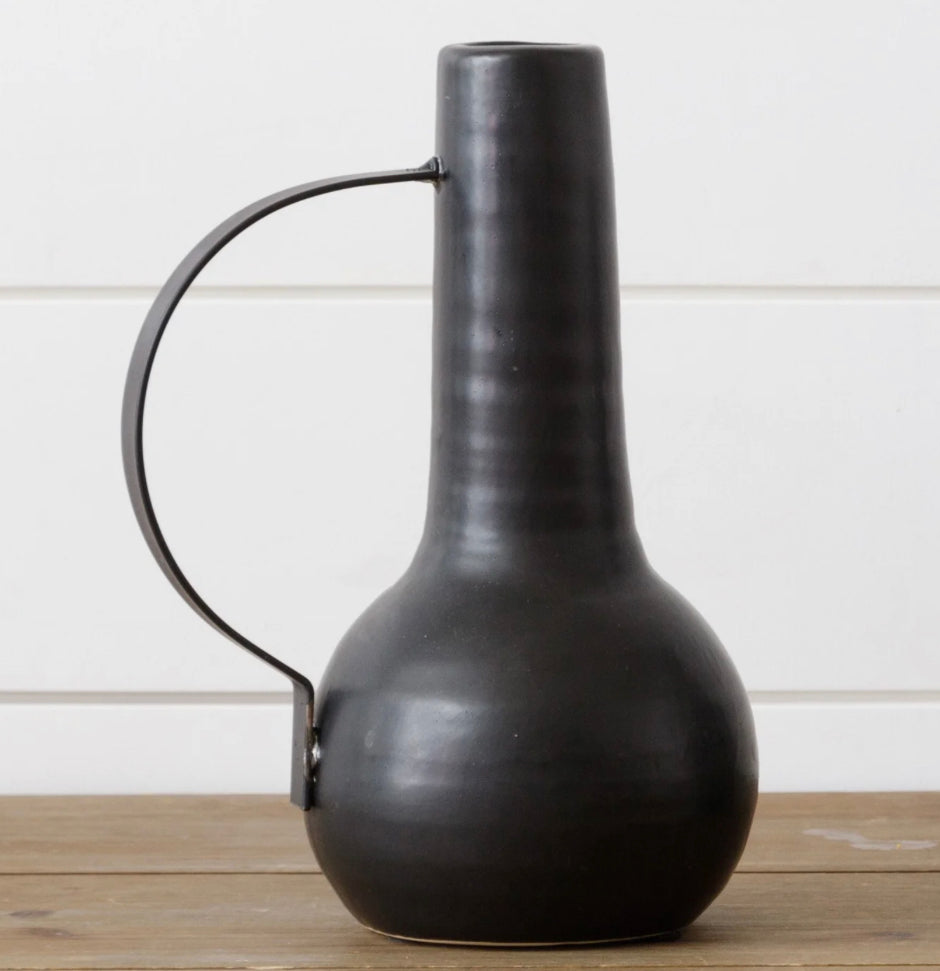 Large Matte Black Vase w Handle